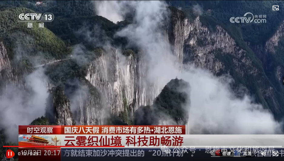 在更高層面的傳播格局中,實現(xiàn)了從“地方名片”到“國家平臺”的躍升。CCTV-13《新聞直播間》《東方時空》兩檔欄目以“云霧織仙境 科技助暢游”為主題直播恩施大峽谷秋色,讓全國觀眾實時感受這片山水秘境的獨特魅力;CCTV-2聚焦恩施大峽谷景區(qū)為游客免費提供熱飲早餐作重點報道。與此同時,新華網(wǎng)、湖北日報、長江云等主流媒體平臺紛紛聚焦恩施假期旅游市場的創(chuàng)新舉措,累計發(fā)布深度報道近百余篇,從服務(wù)質(zhì)量、文化融合、管理創(chuàng)新等多維度展現(xiàn)恩施市文旅發(fā)展的新氣象。