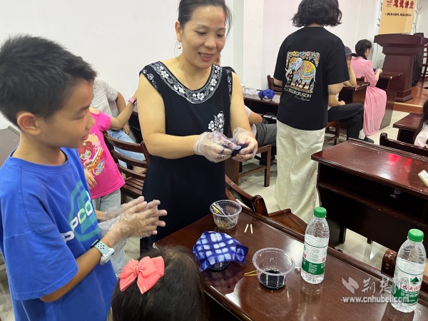 在動手體驗環(huán)節(jié),孩子們興致勃勃地嘗試各種扎結(jié)方法,家長們在旁細心協(xié)助。經(jīng)過精心捆扎與浸染,當一塊塊布料被緩緩展開,呈現(xiàn)出獨一無二的藍白紋樣時,現(xiàn)場響起陣陣驚嘆?;顒硬粌H提升了孩子們的動手能力與專注力,更讓他們深切感受到傳統(tǒng)技藝的魅力與勞動的喜悅。