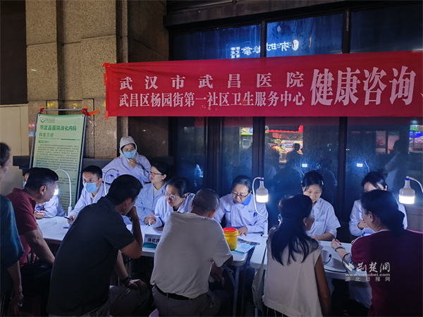 當日,隨著夜色降臨,義診桌前臺燈逐一亮起。來自武昌醫(yī)院消化內(nèi)科、呼吸內(nèi)科等科室的專家醫(yī)師現(xiàn)場坐診,就常見的慢性病管理、飲食養(yǎng)生及用藥安全等問題,為居民進行耐心解答,并對不同病癥的居民給出個性化的健康指導。社區(qū)衛(wèi)生服務中心婦保科的醫(yī)生也忙碌其中,為女性居民提供婦科健康咨詢與知識科普。