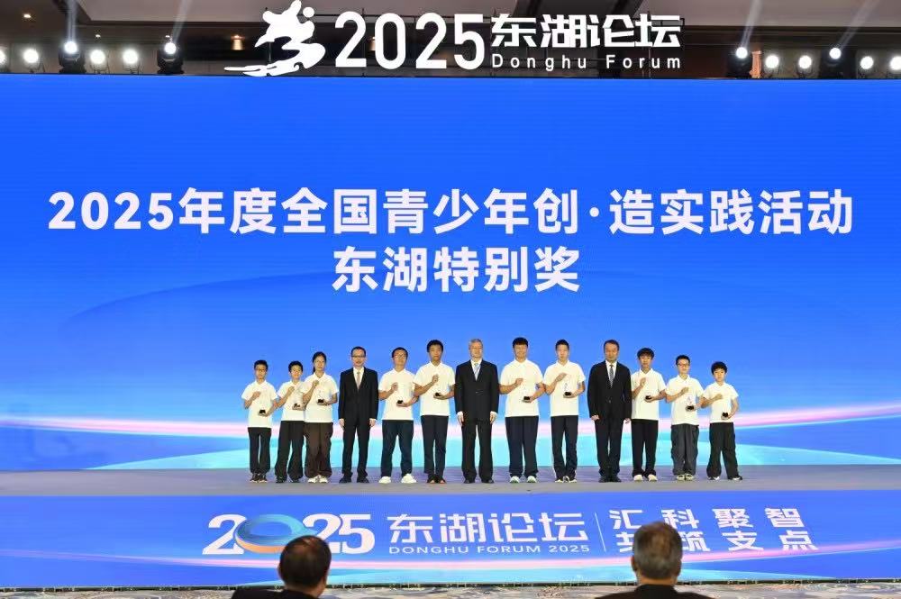 當(dāng)青春創(chuàng)意遇上科技星光,東湖之畔綻放創(chuàng)新光芒。開幕式上,李德仁、丁烈云、丁榮軍、謝先啟、孫和平、李培武、楊春和、金梅林等專家依次登臺,為2025年度全國青少年創(chuàng)·造實踐活動?xùn)|湖特別獎代表頒獎并贈送寄語,希望年輕一代熱愛科學(xué),保持好奇,勇于探索,未來為祖國做貢獻。