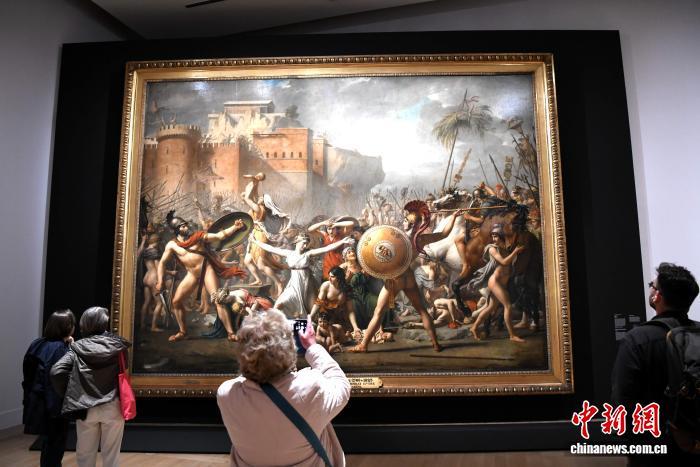 當(dāng)?shù)貢r間10月15日,法國盧浮宮“雅克-路易·大衛(wèi)”特展拉開帷幕,旨在紀(jì)念法國著名畫家雅克-路易·大衛(wèi)逝世200周年。圖為觀眾在欣賞他創(chuàng)作的名畫《薩賓婦女》?!≈行律缬浾?李洋 攝