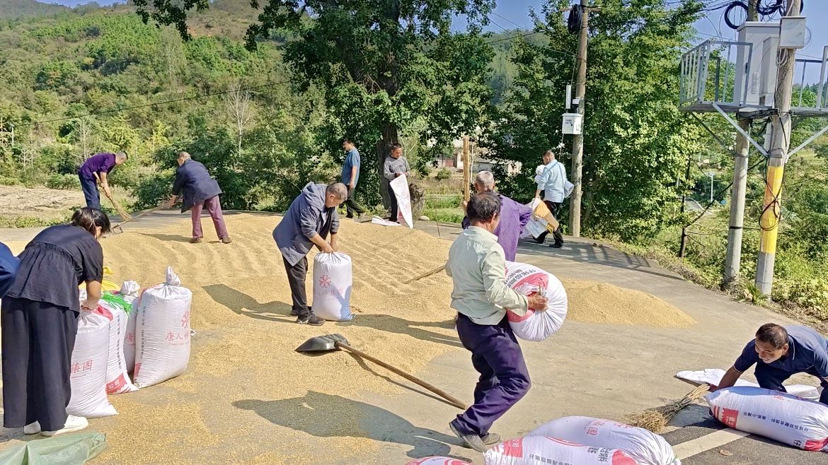 “家里勞動(dòng)力少,正愁曬谷!多虧干部們給場(chǎng)地、幫干活,解決了大難題!”龍?zhí)洞宕迕耦仢啥Y一邊裝糧一邊感慨。