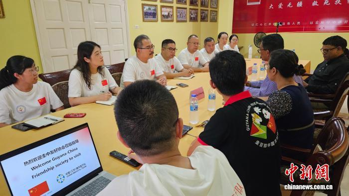 中新網(wǎng)圭亞那10月23日電 (李妍雨 彭森)圭中友好協(xié)會會長保羅(Paul)、圭亞那NCN電視臺臺長塞繆爾·蘇克南丹(Samuel Sukhnandan)一行日前在圭亞那拜會第21批中國(江蘇)援圭亞那醫(yī)療隊(duì)并舉行座談,就未來一年的醫(yī)療協(xié)同與社區(qū)公益活動達(dá)成合作共識。