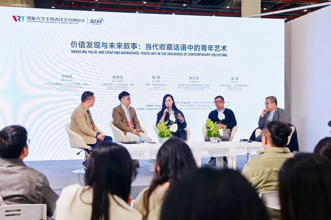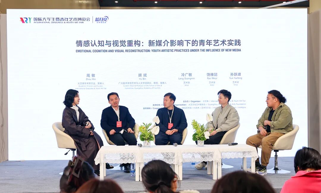 備受矚目的重頭戲是由四川美術(shù)學(xué)院教授、博士研究生導(dǎo)師、策展人何桂彥擔(dān)綱策劃的兩場(chǎng)“學(xué)術(shù)論壇”,分別于開(kāi)幕日上午與下午在大藝博論壇區(qū)開(kāi)講,官方直播間同步開(kāi)播。首場(chǎng)論壇「情感認(rèn)知與視覺(jué)重構(gòu):新媒介影響下的青年藝術(shù)實(shí)踐」,聚焦于新媒介技術(shù)時(shí)代催生的全新的美學(xué)范式如何影響青年藝術(shù)家的創(chuàng)作。特邀廣州美術(shù)學(xué)院藝術(shù)與人文學(xué)院院長(zhǎng)、教授、策展人胡斌,大藝博往屆參展藝術(shù)家冷廣敏、饒維懿,2025大藝博FREE計(jì)劃藝術(shù)家個(gè)展參展藝術(shù)家孫躍峰作為嘉賓,由大藝博學(xué)術(shù)部總監(jiān)、策展人周敏主持。第二場(chǎng)論壇「價(jià)值發(fā)現(xiàn)與未來(lái)敘事:當(dāng)代收藏話語(yǔ)中的青年藝術(shù)」從“語(yǔ)言-機(jī)制-系統(tǒng)-未來(lái)”四個(gè)維度,探討青年藝術(shù)的價(jià)值發(fā)現(xiàn)與藝術(shù)生態(tài)的營(yíng)建。特邀收藏家、東通菜園園丁、藝術(shù)愛(ài)好者焦景佳,收藏家、剩余空間創(chuàng)始人眭群,湖北美術(shù)學(xué)院繪畫(huà)學(xué)院院長(zhǎng)、教授徐文濤,Hi藝術(shù)出品人、玉蘭堂畫(huà)廊創(chuàng)始人伍勁作為論壇嘉賓,由何桂彥擔(dān)任主持。