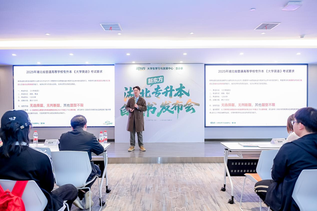 新東方武漢學(xué)校專(zhuān)升本項(xiàng)目教學(xué)組長(zhǎng)胡誠(chéng)林老師帶領(lǐng)大家解讀了2025湖北專(zhuān)升本英語(yǔ)考試考情,并細(xì)致入微地剖析專(zhuān)升本英語(yǔ)考試各題型板塊的學(xué)習(xí)思路和整體備考規(guī)劃。