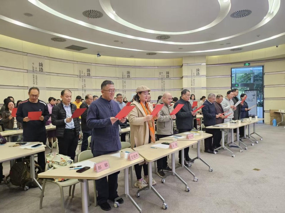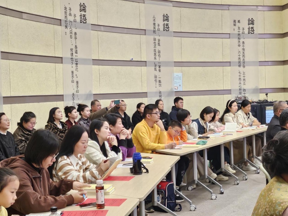 活動現(xiàn)場,來自新疆、河北等地的傳統(tǒng)文化愛好者與楚天數(shù)字書院研學班師生踴躍提問,與嘉賓展開熱烈互動?;顒游猜暎w參與者齊聲誦讀《論語》經(jīng)典章句,瑯瑯書聲回蕩廳內(nèi),讓千年智慧在當下煥發(fā)新生。此外,“論語生活美學展區(qū)”與“智慧之泉”互動墻等沉浸式體驗環(huán)節(jié),也讓讀者在場景中感受經(jīng)典與日常的融合之美。