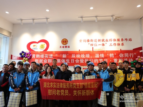 荊楚網(wǎng)(湖北日報網(wǎng))訊(通訊員 周佳穎)10月28日下午,武昌區(qū)黃鶴樓街道在街道新就業(yè)群體服務驛站、黃鶴先“蜂”新時代文明實踐點舉辦“‘新’辰映晚晴,溫情‘鶴’你同行”新就業(yè)群體集體生日會暨“我們的節(jié)日·重陽”主題活動。活動融合集體慶生與敬老文化,通過系列暖心環(huán)節(jié)增強新就業(yè)群體歸屬感,弘揚尊老敬老美德,營造“黃鶴樓下是我家”的溫暖街區(qū)氛圍。