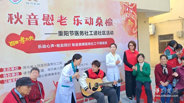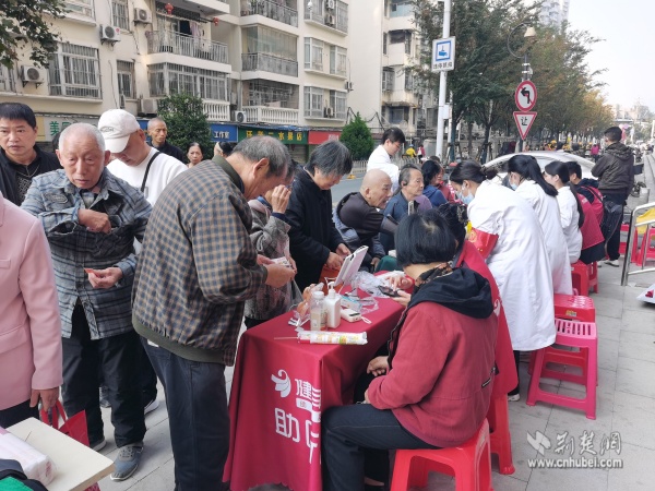 黃鶴書(shū)房外,由社區(qū)聯(lián)合武漢大學(xué)人民醫(yī)院共同舉辦的“秋音慰老,樂(lè)動(dòng)桑榆”主題活動(dòng)別具特色,融合健康義診、傳統(tǒng)美食、趣味游藝于一體。