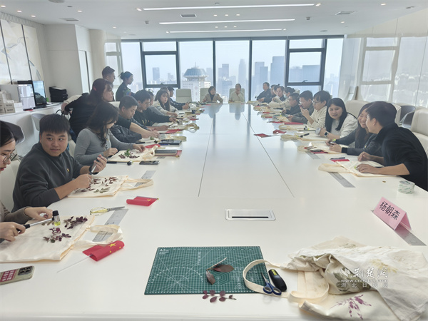 宣講結(jié)束后,現(xiàn)場還組織了“植物拓印”非遺體驗環(huán)節(jié)。在武漢啟晨社會組織的指導(dǎo)下,黨員們以純天然植物為材料,制作了出了各具特色的環(huán)保袋。大家紛紛表示,在動手創(chuàng)造美的過程中,切身感受到了綠色低碳生活的魅力,增強了踐行環(huán)保理念的自覺。