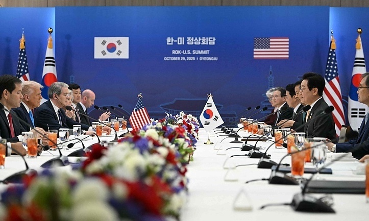 韓國總統(tǒng)李在明10月29日在韓國慶州同到訪的美國總統(tǒng)特朗普會晤,討論鞏固韓美同盟等問題。
