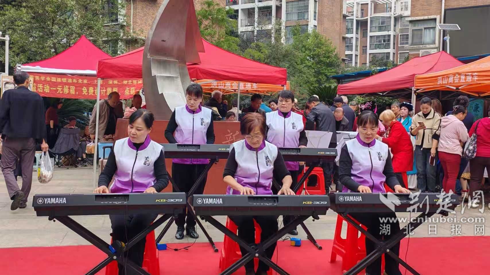隨后,文藝匯演精彩啟幕。社區(qū)黨員、文藝愛好者與居家養(yǎng)老服務(wù)中心志愿者聯(lián)袂獻(xiàn)藝,帶來了一場精彩紛呈的視聽盛宴:昂揚(yáng)的大合唱唱出了老人們對黨的感恩與對生活的熱愛;節(jié)奏明快的舞蹈展現(xiàn)出蓬勃向上的精神風(fēng)貌;電子琴齊奏音色悠揚(yáng)、婉轉(zhuǎn)悅耳;經(jīng)典黃梅戲選段韻味悠長,勾起老一輩的青春回憶;輕快靈動的口琴演奏贏得臺下陣陣喝彩。表演者全心投入,老人們看得津津有味,不時跟著哼唱、拍手叫好,歡聲笑語交織成最動人的節(jié)日樂章。