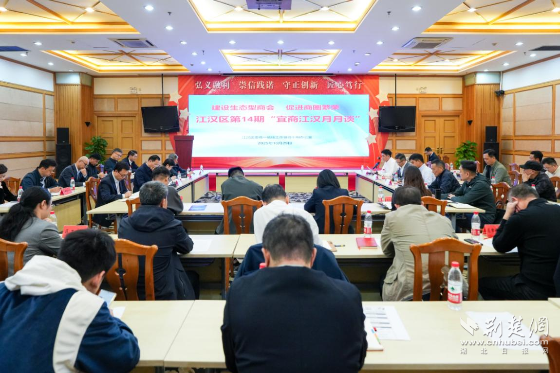 10月29日,江漢區(qū)第14期“宜商江漢月月談”聚焦“建設(shè)生態(tài)型商會,促進(jìn)商圈繁榮”主題,邀請區(qū)內(nèi)重點商會、商業(yè)企業(yè)與相關(guān)部門代表面對面交流,圍繞營商環(huán)境、政策支持、基礎(chǔ)設(shè)施等關(guān)鍵議題,現(xiàn)場收集意見建議,實現(xiàn)問題在一線回應(yīng)、共識在一線凝聚、行動在一線落實。