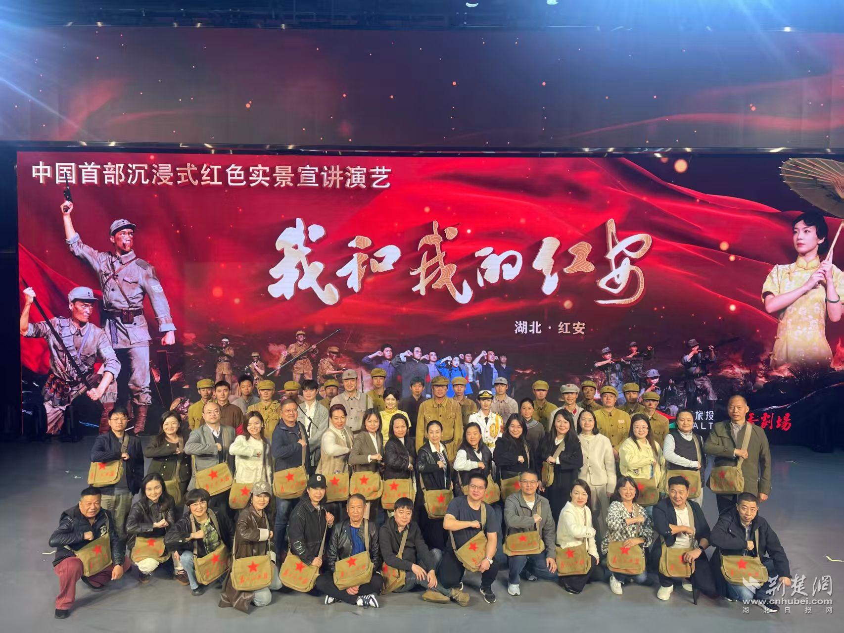 夜幕降臨,紅秀劇場(chǎng)燈光亮起,沉浸式紅色實(shí)景演藝《我和我的紅安》以聲光電融合的形式再現(xiàn)革命歷史。隨著劇情推進(jìn),崢嶸歲月的畫(huà)面一幕幕重現(xiàn),學(xué)員們?cè)谡鸷撑c感動(dòng)中感悟理想信念的力量。