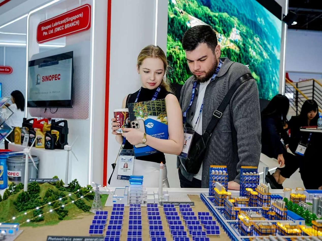 展會期間,中國石化展出的綠電制氫項目沙盤受到與會人士高度關(guān)注。據(jù)介紹,該模型展示了太陽能發(fā)電、風(fēng)能發(fā)電、電力輸送、綠氫工廠、氫氣儲存和輸送、綠氫交通、綠氫煉化、地?zé)崮芄┡ㄖ评洌┑染C合應(yīng)用場景,生動呈現(xiàn)了中國石化在可再生能源制氫成本降低和規(guī)模增長方面的成果,