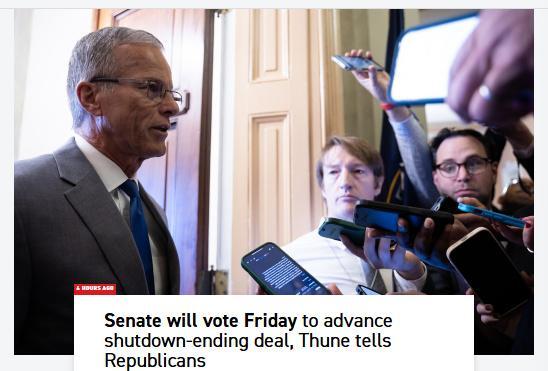 中新網(wǎng)11月7日電 據(jù)美國政治新聞網(wǎng)站Politico援引知情人士消息,當(dāng)?shù)貢r(shí)間6日,美國國會(huì)參議院多數(shù)黨領(lǐng)袖、共和黨人約翰·圖恩透露,他計(jì)劃于7日推動(dòng)一項(xiàng)關(guān)鍵表決,此舉可能為“打破當(dāng)前破紀(jì)錄的政府停擺局面鋪平道路”。