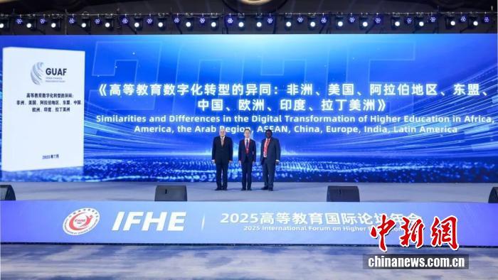 11月9日杭州2025高等教育國際論壇開幕式上,中國高等教育學會與歐洲大學協(xié)會、美國教育委員會等8大國際教育組織聯(lián)合撰寫的《高等教育數(shù)字化轉(zhuǎn)型的異同》研究報告進行了展示。(主辦方供圖)