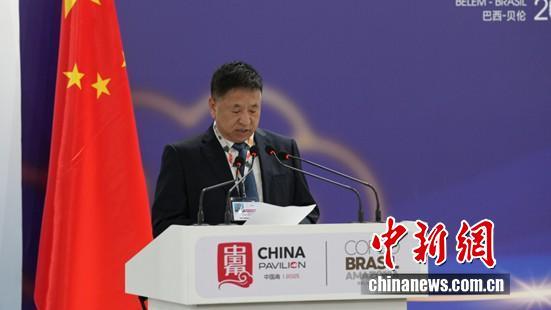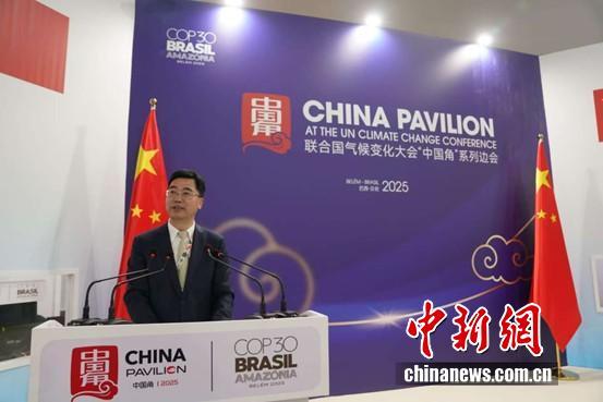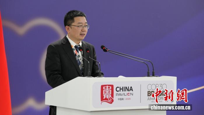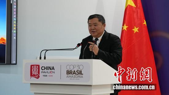 圖為COP30中國代表團(tuán)團(tuán)長 生態(tài)環(huán)境部副部長李高主持邊會致辭環(huán)節(jié)。中國新聞網(wǎng)記者 林勐男 攝