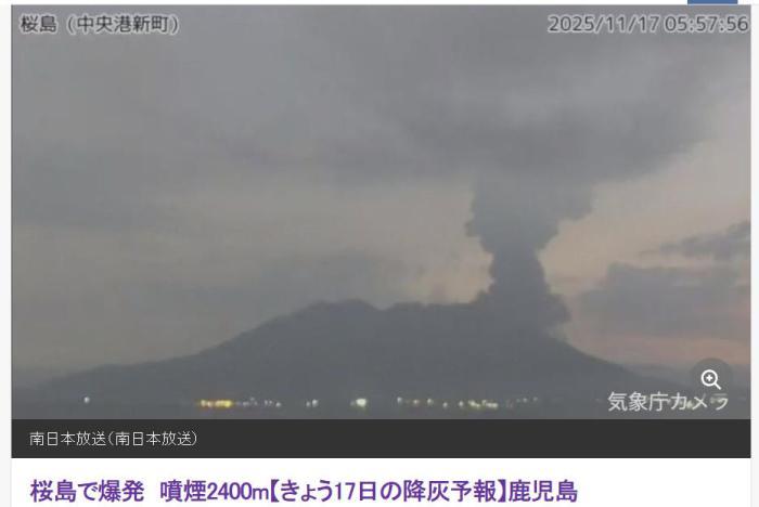 中新網(wǎng)11月17日電 據(jù)日本“南日本放送”援引日本氣象廳的消息,當(dāng)?shù)貢r(shí)間17日凌晨5時(shí)54分,日本櫻島南岳山頂火山口發(fā)生爆炸性噴發(fā)。