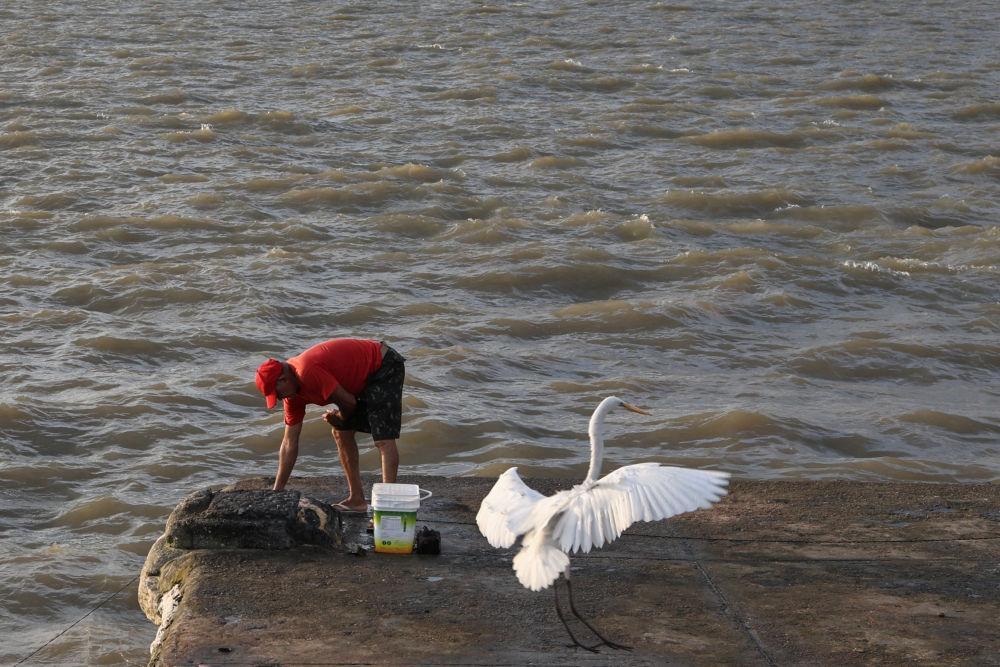 11月16日,在巴西北部城市貝倫,一名漁民在岸邊工作。新華社發(fā)(克勞迪婭·馬爾提尼攝)