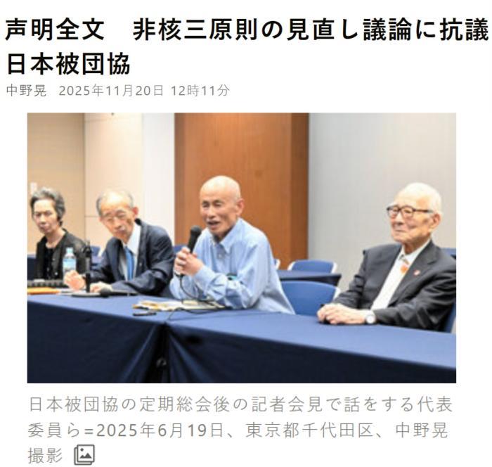 中新網(wǎng)11月20日電 據(jù)日本《朝日新聞》報(bào)道,當(dāng)?shù)貢r(shí)間20日,日本原子彈氫彈爆炸受害者團(tuán)體協(xié)議會(huì)就日本首相高市早苗考慮修改“無(wú)核三原則”一事發(fā)表致高市的聲明,稱“這將顛覆迄今為止的政府見(jiàn)解,強(qiáng)烈抗議開(kāi)啟修改‘三原則’的討論”。