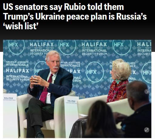 另據(jù)美國廣播公司(ABC)報道,幾名匿名美國官員透露,魯比奧在電話中告知他們,這項“28點”和平計劃并非由美國制定。