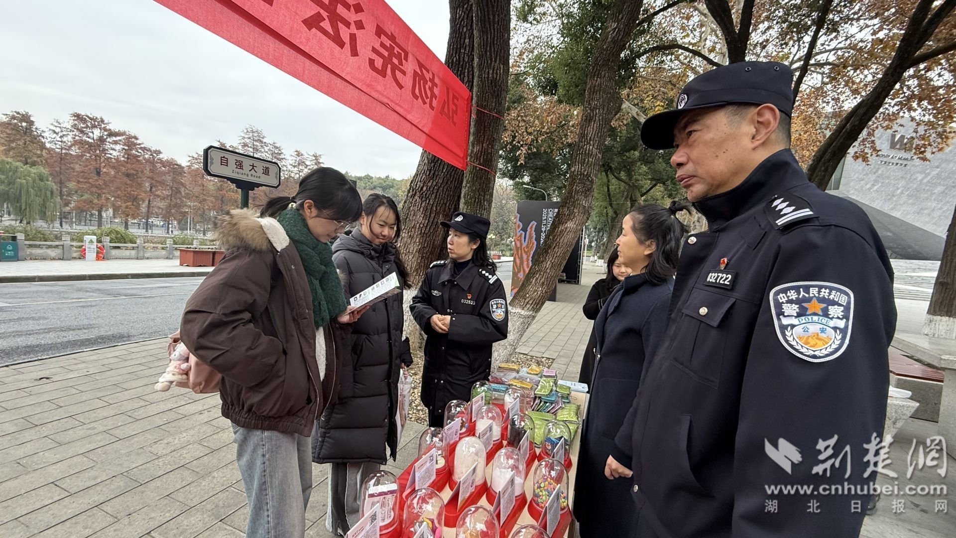荊楚網(wǎng)(湖北日報網(wǎng))訊(通訊員 方茜)12月4日,武昌區(qū)珞珈山街道聯(lián)合武漢大學(xué)保衛(wèi)部、轄區(qū)派出所、司法所、執(zhí)法隊等多部門,在武漢大學(xué)萬林藝術(shù)博物館門前舉辦“憲法宣傳周”暨國家憲法日集中宣傳活動。本次活動以“憲法守護(hù)健康權(quán),禁毒筑牢生命線”為主題,旨在弘揚憲法精神,增強全民法治觀念,同時深化禁毒宣傳教育,筑牢校園與社會禁毒防線。