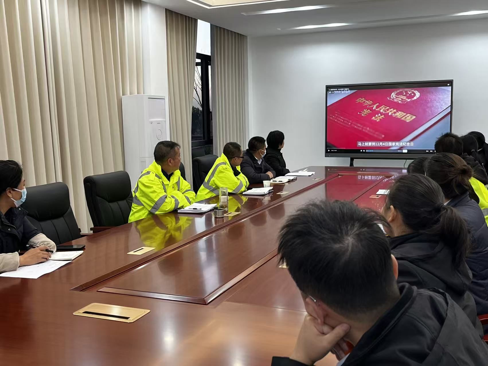 在收費(fèi)站會(huì)議室,屏幕上《中華人民共和國(guó)憲法》的封面莊重醒目,職工們集中觀看憲法宣傳教育片,系統(tǒng)學(xué)習(xí)憲法核心要義、基本原則以及與崗位工作密切相關(guān)的法治規(guī)范,“依憲履職、依法服務(wù)”的意識(shí)逐漸深化。大家紛紛表示,要將憲法精神融入日常收費(fèi)服務(wù)的每一個(gè)環(huán)節(jié),讓法治思維成為崗?fù)すぷ鞯摹盎緶?zhǔn)則”。