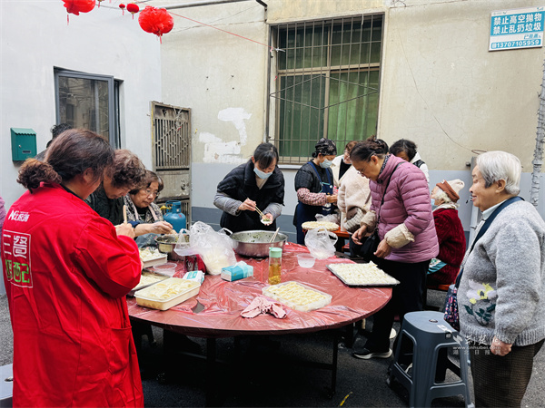 活動(dòng)最暖環(huán)節(jié),當(dāng)屬跨小區(qū)的鄰里美食互動(dòng)。工程營(yíng)小區(qū)鄰里客廳熬制的排骨藕湯香氣撲鼻,九中宿舍小區(qū)鄰里客廳內(nèi),居民正合力包制團(tuán)圓餃子。兩小區(qū)居民齊聚一堂,熱湯配餃子,一場(chǎng)暖心家宴在嘮家常的溫馨氛圍中開(kāi)席,詮釋了“左鄰右舍齊歡聚,共筑復(fù)興時(shí)光里”的活動(dòng)主題。