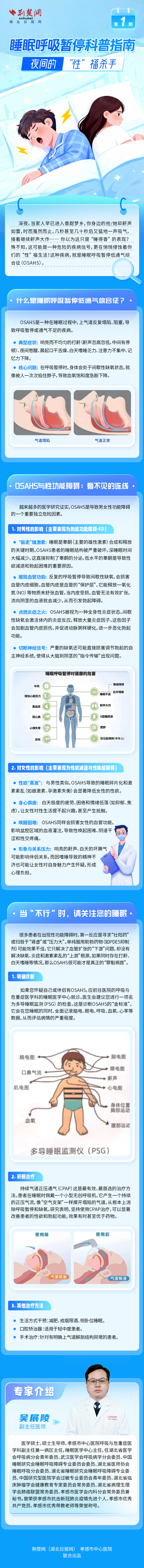 深夜,當(dāng)家人早已進(jìn)入香甜夢鄉(xiāng),你身邊的TA卻鼾聲如雷,時而夏然而止,幾秒甚至幾十秒后又猛地一聲吸氣,接著繼續(xù)鼾聲大作……你以為這只是"睡得香"的表現(xiàn)?殊不知,這可能是一種危險的疾病信號,更在悄悄侵蝕著你們的“性”福生活!這種疾病,就是睡惺惺呼吸暫停低通氣綜合征(OSAHS)。