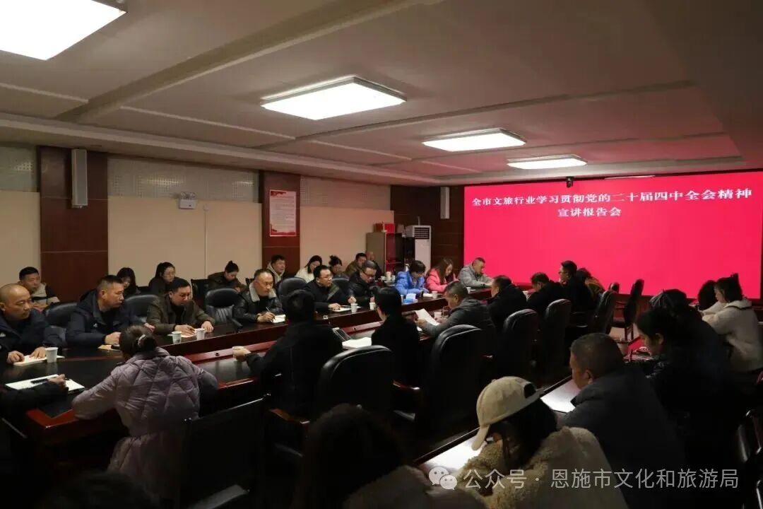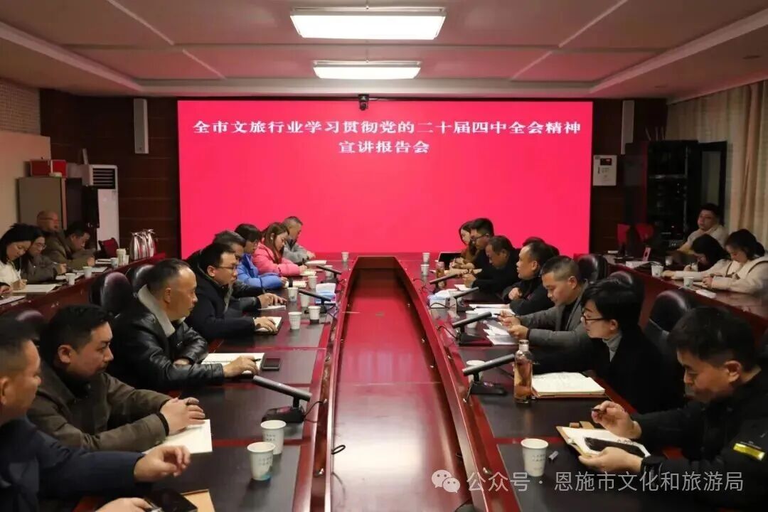 黨的二十屆四中全會是在向第二個百年奮斗目標進軍的關(guān)鍵時期召開的一次十分重要的大會,會上系統(tǒng)謀劃了“十五五”時期經(jīng)濟社會發(fā)展宏偉藍圖,對文化建設(shè)和旅游發(fā)展提出了一系列新部署、新要求,為文旅事業(yè)發(fā)展指明了前進方向、提供了根本遵循。要將學(xué)習(xí)貫徹全會精神作為當前和今后一個時期的重要政治任務(wù),切實把思想和行動統(tǒng)一到黨中央決策部署上來,奮力推動恩施市文化旅游業(yè)高質(zhì)量發(fā)展行穩(wěn)致遠。