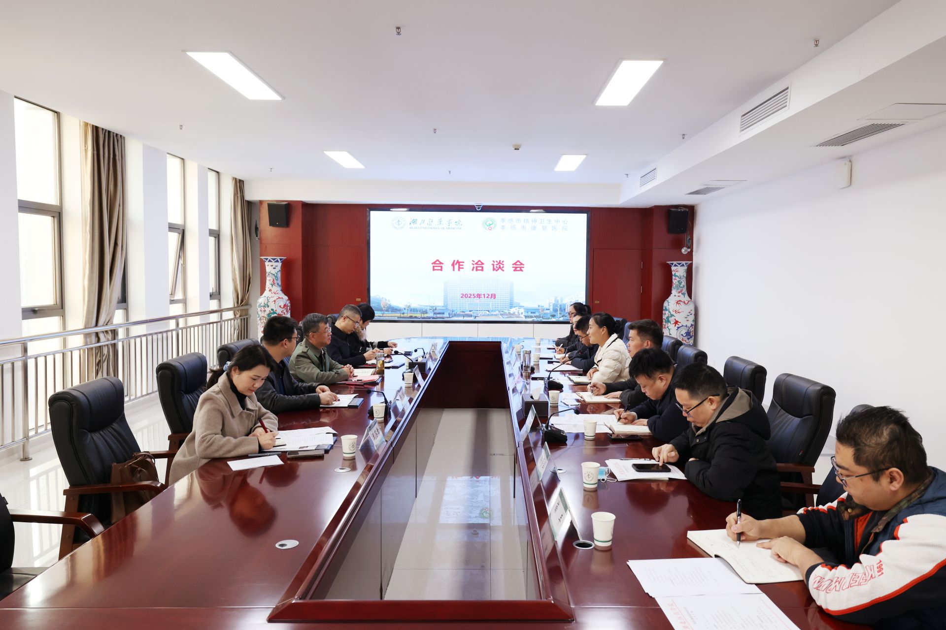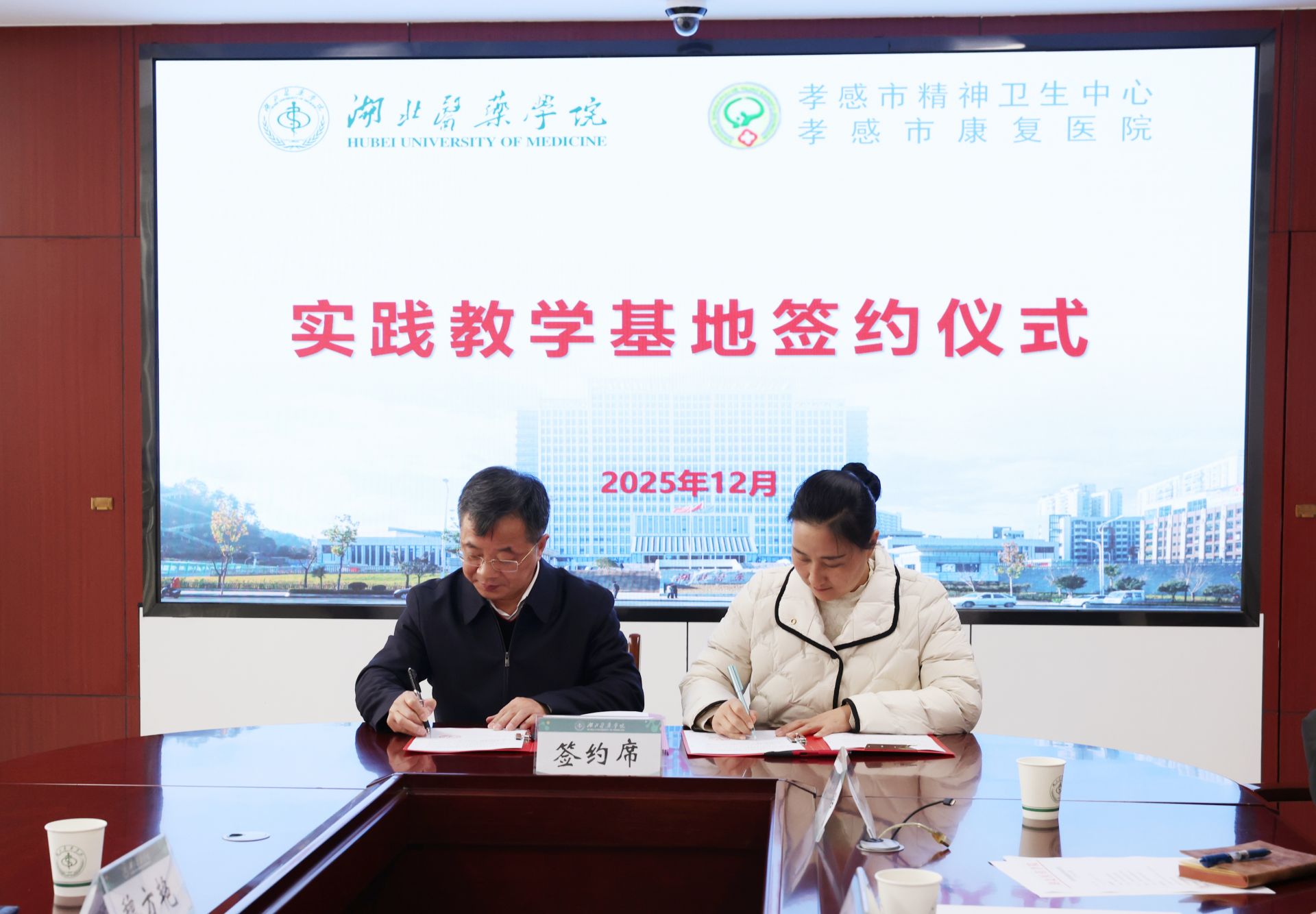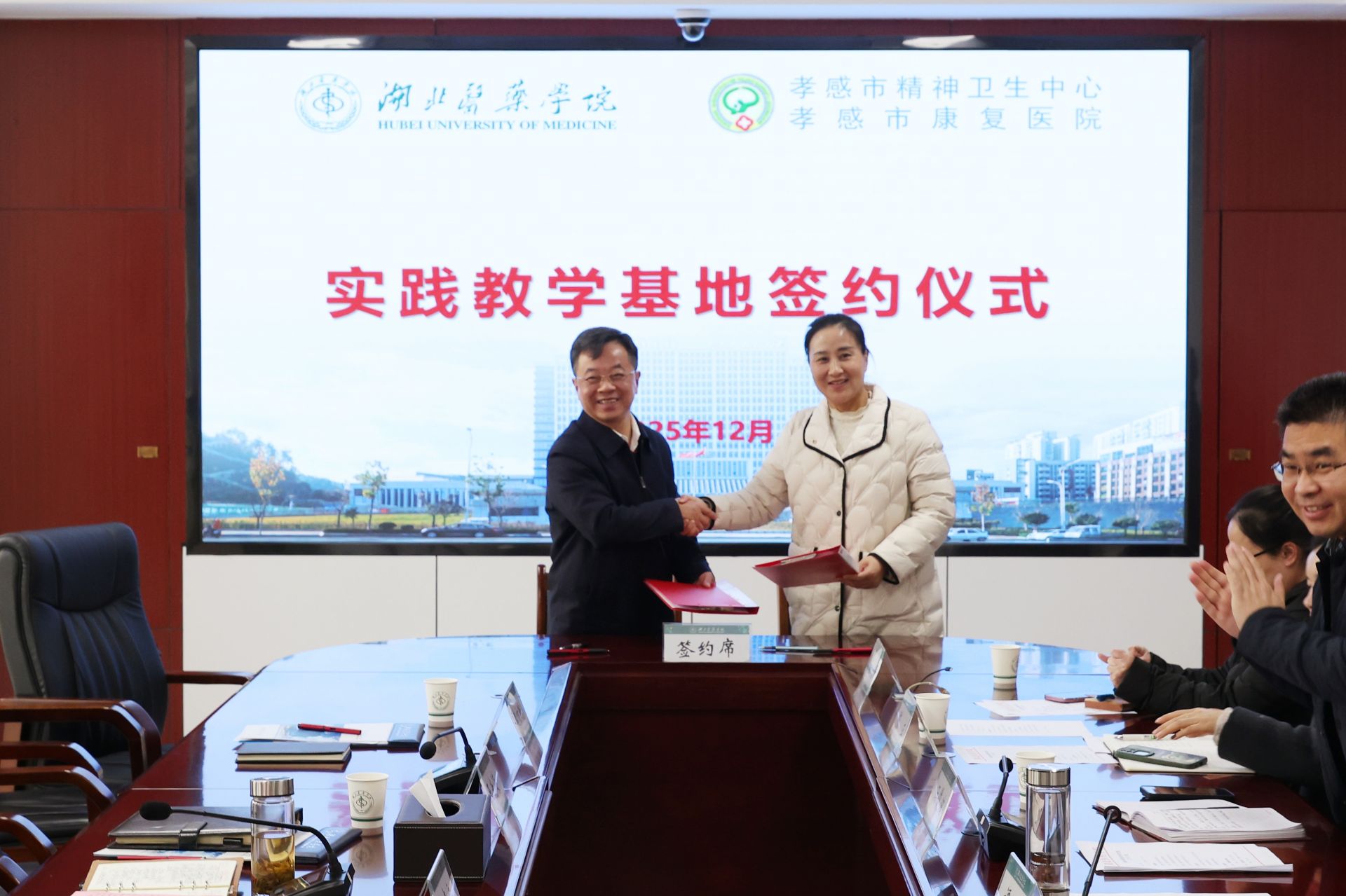 活動(dòng)中,雙方圍繞教學(xué)實(shí)習(xí)、科研合作、繼續(xù)教育等關(guān)鍵議題展開(kāi)深入探討,達(dá)成廣泛共識(shí)。湖北醫(yī)藥學(xué)院副校長(zhǎng)譚艷和孝感市康復(fù)醫(yī)院院長(zhǎng)劉曉安分別代表雙方單位,正式簽訂合作協(xié)議。2026年10月,湖北醫(yī)藥學(xué)院將選派10名精神醫(yī)學(xué)專業(yè)學(xué)生與10名護(hù)理專業(yè)學(xué)生,赴我院開(kāi)展臨床實(shí)習(xí)。雙方在以后的合作中將重點(diǎn)聚焦三大方向:一是優(yōu)化實(shí)習(xí)帶教體系,打造臨床醫(yī)學(xué)與護(hù)理專業(yè)優(yōu)質(zhì)實(shí)踐平臺(tái);二是建立常態(tài)化學(xué)術(shù)交流機(jī)制,共享資源提升教育教學(xué)質(zhì)量;三是依托學(xué)科優(yōu)勢(shì)聯(lián)合攻關(guān),圍繞精神疾病防治等領(lǐng)域推進(jìn)科研創(chuàng)新,產(chǎn)出更多臨床價(jià)值成果。