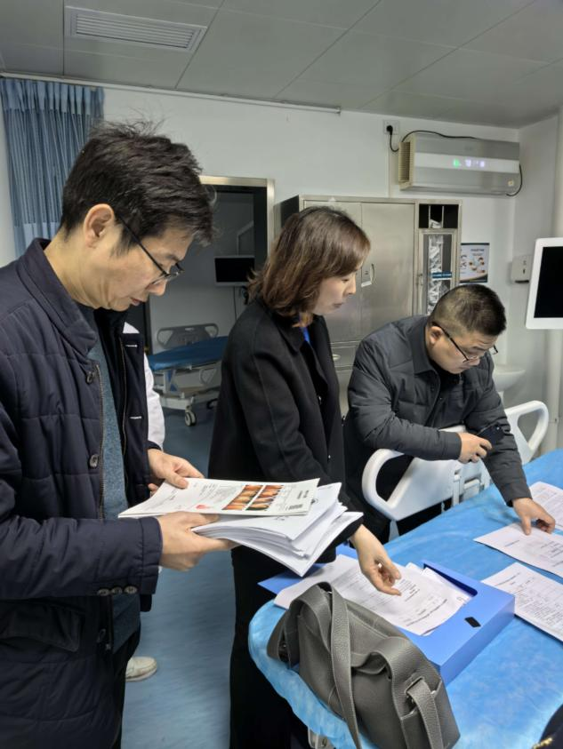 專家組由武漢大學(xué)人民醫(yī)院安萍教授、陳煒教授、駱孜護士長及武漢科技大學(xué)天佑醫(yī)院龍輝教授組成,采取“現(xiàn)場核查+資料審閱+人員訪談+集中匯報”的方式,對區(qū)域布局與流程、操作人員資質(zhì)、內(nèi)鏡消毒滅菌、患者安全管理、設(shè)備耗材保障等八大核心維度進行全方位評估。檢查過程中,專家組深入消化內(nèi)鏡中心,實地查看診療區(qū)域布局、設(shè)備運行狀況及消毒供應(yīng)流程,仔細翻閱病歷檔案、操作記錄和質(zhì)控臺賬,與醫(yī)護人員面對面交流診療規(guī)范落實及應(yīng)急處置流程等情況。