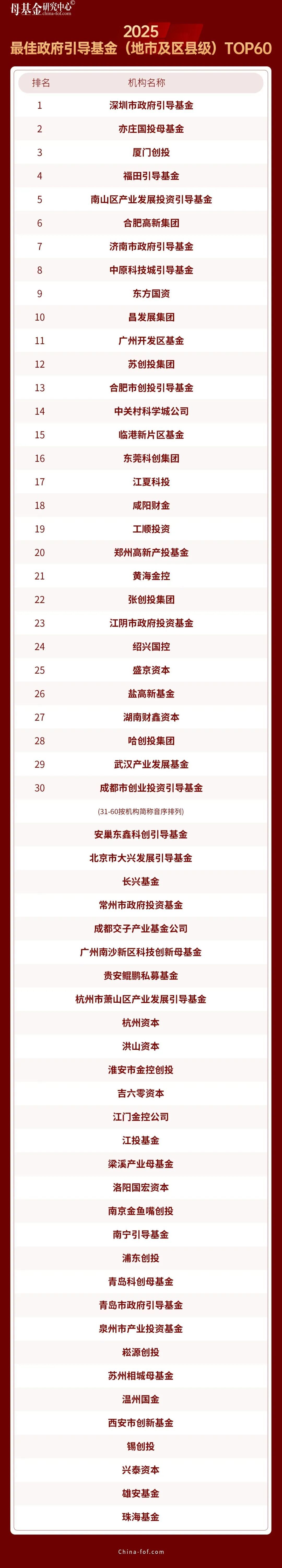 12月29日,母基金研究中心發(fā)布2025年度榜單,江夏科投集團獲評“2025最佳政府引導基金(地市及區(qū)縣)TOP30”第17名、科投集團董事長韓偉榮膺“2025最佳母基金投資人TOP40”稱號,連續(xù)兩年榮登榜單是業(yè)內(nèi)權威機構對江夏科投集團作為科技創(chuàng)新投資平臺投資能力、管理能力的認可,更標志著其在區(qū)域科技創(chuàng)新資源整合、產(chǎn)業(yè)培育布局等方面的能力已躋身全國地市及區(qū)縣級引導基金第一梯隊,成為地方政府引導基金助力區(qū)域經(jīng)濟高質(zhì)量發(fā)展的標桿樣本。