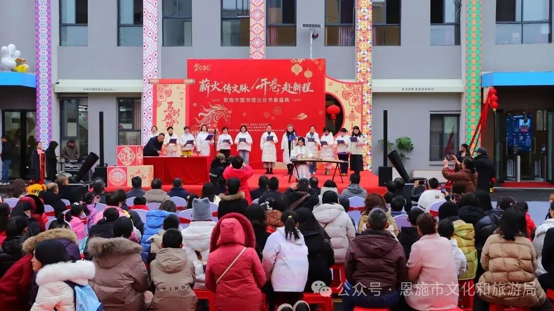 2026年1月1日,恩施市圖書館以“薪火傳文脈 開卷赴新程”為主題,隆重舉辦元旦書香盛典,改造升級(jí)后的一樓新空間正式向公眾開放,眾多市民齊聚現(xiàn)場(chǎng),共同見證這場(chǎng)洋溢著書香氣息的文化盛事。