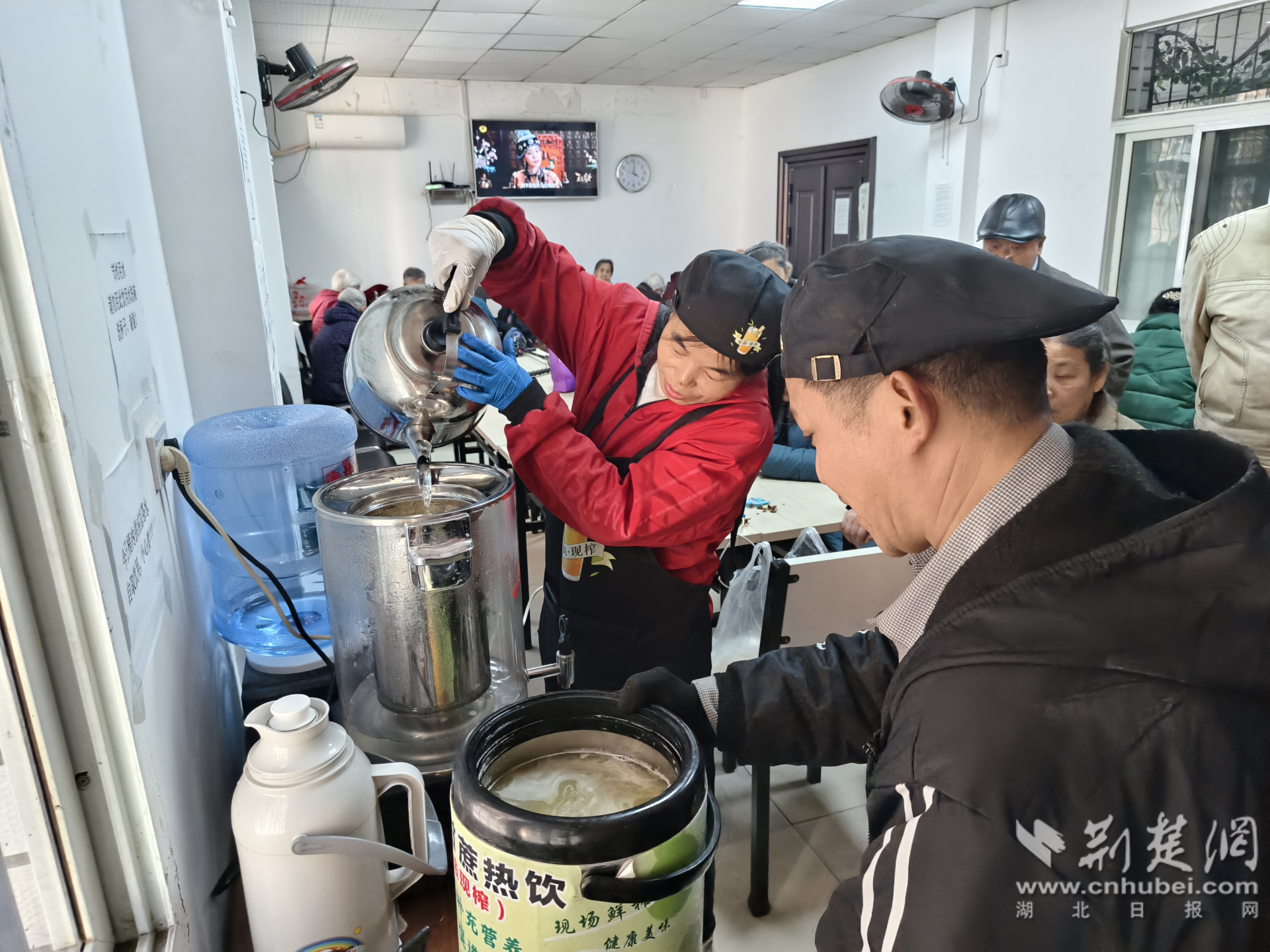 荊楚網(wǎng)(湖北日報網(wǎng))訊(通訊員 游薇 侯本瑞)近日,在武昌區(qū)楊園街道電力新村社區(qū)取暖室內,愛心商家每天惠商鋪的工作人員將一杯杯甘甜溫熱的甘蔗汁送到社區(qū)老人們手中,用樸實善舉傳遞社會溫情。