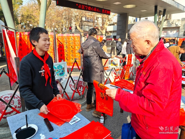 荊楚網(湖北日報網)訊(通訊員 胡雅菲 許小玲)為弘揚中華優(yōu)秀傳統(tǒng)文化,凝聚區(qū)域共建合力,助力武昌區(qū)創(chuàng)建“中國書法之鄉(xiāng)”,1月15日上午,由湖北省教育學會書法教育專業(yè)委員會主辦、武昌區(qū)黃鶴樓街道花堤社區(qū)聯(lián)合共建單位湖北省武昌實驗小學承辦的“社區(qū)學校心連心,喜送福聯(lián)迎新春”公益活動,在實驗小學門口拉開帷幕。
