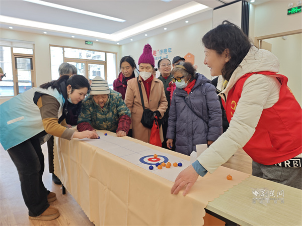 當(dāng)天,恰逢社區(qū)老年人服務(wù)中心正式啟用、“15分鐘養(yǎng)老服務(wù)圈” 落地運(yùn)行。工作人員向到場老人詳細(xì)介紹中心功能分區(qū)與服務(wù)預(yù)約流程,志愿者帶領(lǐng)大家做起適老拍拍操,舒展筋骨。投壺、桌上冰球等趣味游戲輪番登場,現(xiàn)場歡聲笑語不斷。王阿姨即興演唱黃梅戲選段,婉轉(zhuǎn)唱腔贏得滿堂喝彩,盡顯長者風(fēng)采。