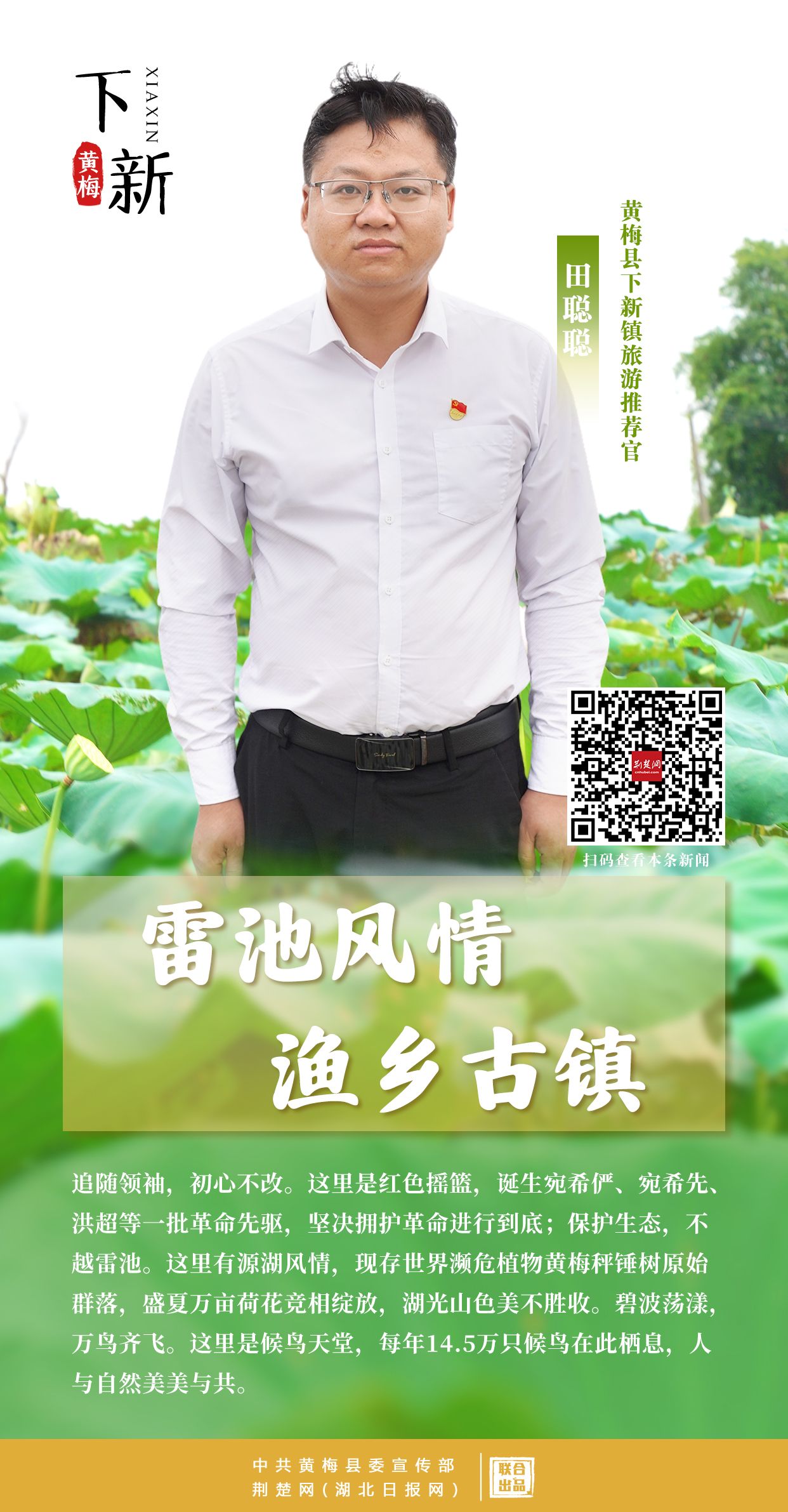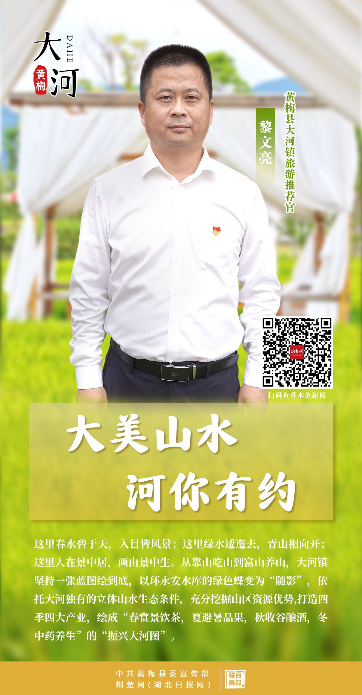 當(dāng)前,黃梅縣踔厲打造農(nóng)文旅融合開放先導(dǎo)區(qū)。各美其美,美美與共。國慶前夕,停前鎮(zhèn)、大河鎮(zhèn)、下新鎮(zhèn)、五祖鎮(zhèn)、柳林鄉(xiāng)、杉木鄉(xiāng)6名鄉(xiāng)鎮(zhèn)黨委書記,紛紛當(dāng)起了旅游推薦官。