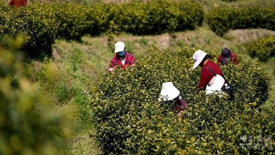 荊楚網(湖北日報網)訊(通訊員 陳祥 陳鈺)一芽一葉一抹香,一人一簍采茶忙。4月9日,湖北省蘄春縣大同鎮(zhèn)操山村黃金茶種植基地里,茶農們正在搶摘清明節(jié)后的黃金茶,為之后的大規(guī)模炒制提供新鮮原料。