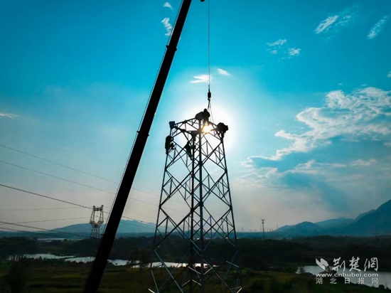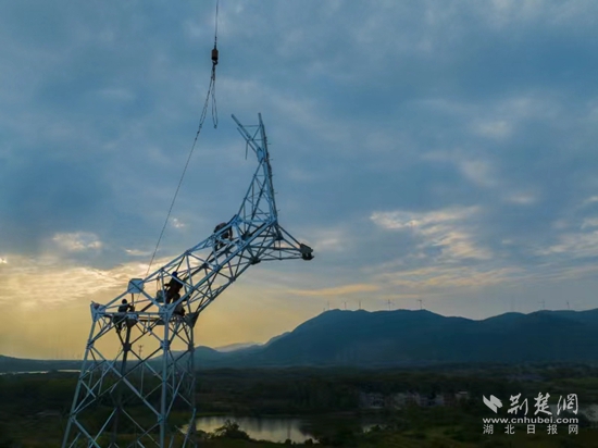 荊楚網(wǎng)(湖北日?qǐng)?bào)網(wǎng))訊(通訊員曹祥魁 袁勝)8月23日下午5點(diǎn),黃石陽(yáng)新縣陶港鎮(zhèn)祠堂畈附近,40多米高鐵塔上4名電力工人渾身濕透,他們扶著頭頂上吊車吊過(guò)來(lái)的鐵部件,開始了最后“一吊”的組塔工作。