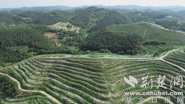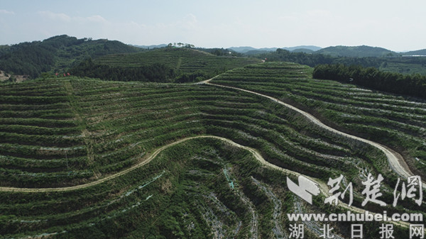 2021年以來(lái),全鎮(zhèn)整合8個(gè)村農(nóng)業(yè)資源,投入資金1600萬(wàn)元,新建高標(biāo)準(zhǔn)茶園7000畝,提檔升級(jí)老舊茶園3000畝,培育茶苗500萬(wàn)株,促進(jìn)300余人穩(wěn)定就業(yè),實(shí)現(xiàn)月均工資2600元以上。圖為7月7日航拍的青山鎮(zhèn)萬(wàn)畝有機(jī)茶園一角。