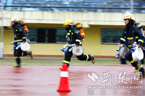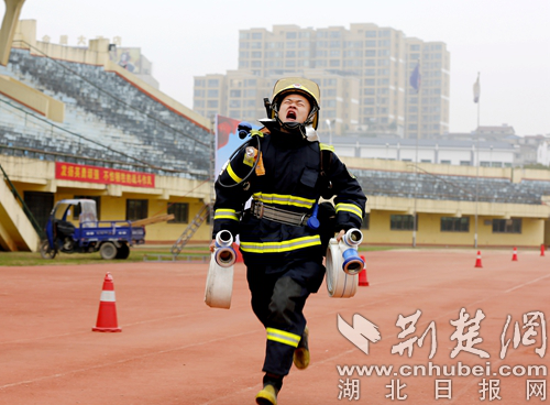 圖為開展100米負(fù)重跑科目現(xiàn)場。 通訊員 朱燕林?jǐn)z