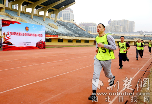 圖為開展3000米跑科目現(xiàn)場。 通訊員 朱燕林?jǐn)z
