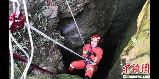 根據(jù)現(xiàn)場情況,指揮員立即利用救援繩索做好安全支點(diǎn),消防員點(diǎn)降至洞底查看被困者情況,所幸洞內(nèi)空氣流暢,被困者無二次傷害的危險(xiǎn)。消防員利用隨身攜帶的全身吊帶將被困者固定好后,經(jīng)洞外消防員齊力,經(jīng)過20多分鐘救援,被困人員被成功營救出山洞。