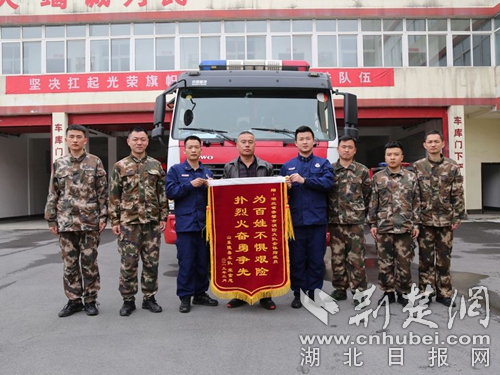 荊楚網(wǎng)客戶端-荊楚網(wǎng)消息(通訊員 朱燕林 徐聰)近日,山東陵縣車隊(duì)的車隊(duì)代表宋金忠先生不遠(yuǎn)千里來到湖北省咸寧赤壁市消防大隊(duì),將一面印有“為百姓不懼艱險(xiǎn),撲烈火奮勇爭先”的錦旗親手送到消防指戰(zhàn)員的手上,專程感謝消防指戰(zhàn)員于3月3日在京港澳高速湖北赤壁收費(fèi)站高速出口處奮力撲滅他貨車起火的感激之情,并向辛勤奮戰(zhàn)在防、滅火第一線的全體消防指戰(zhàn)員表示崇高的敬意。