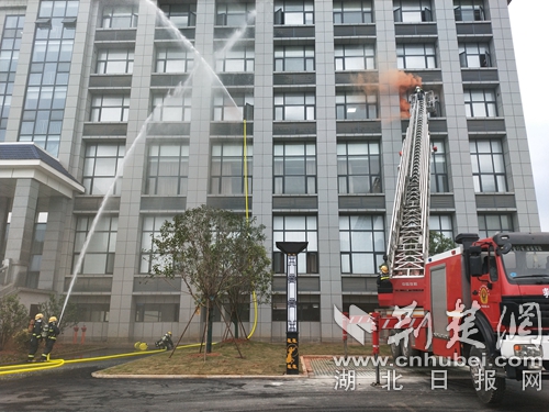 圖為消防指戰(zhàn)員開(kāi)展演練現(xiàn)場(chǎng)。 程遠(yuǎn)攝