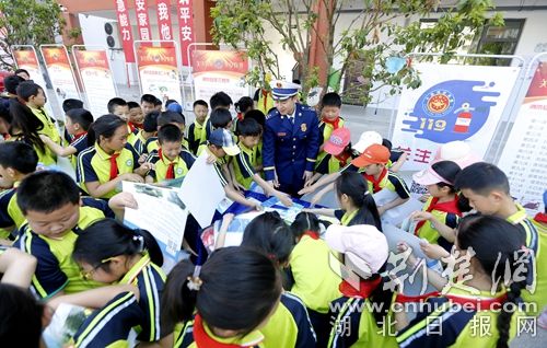 圖為發(fā)放消防宣傳資料現(xiàn)場。 官易洲攝