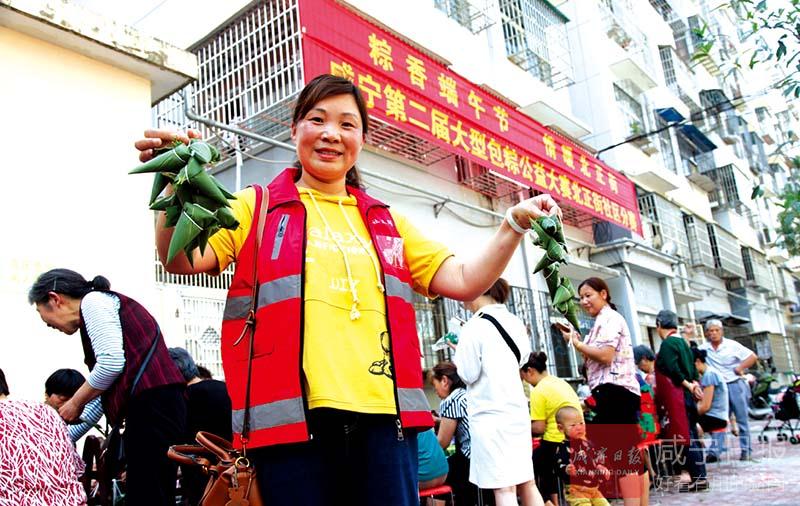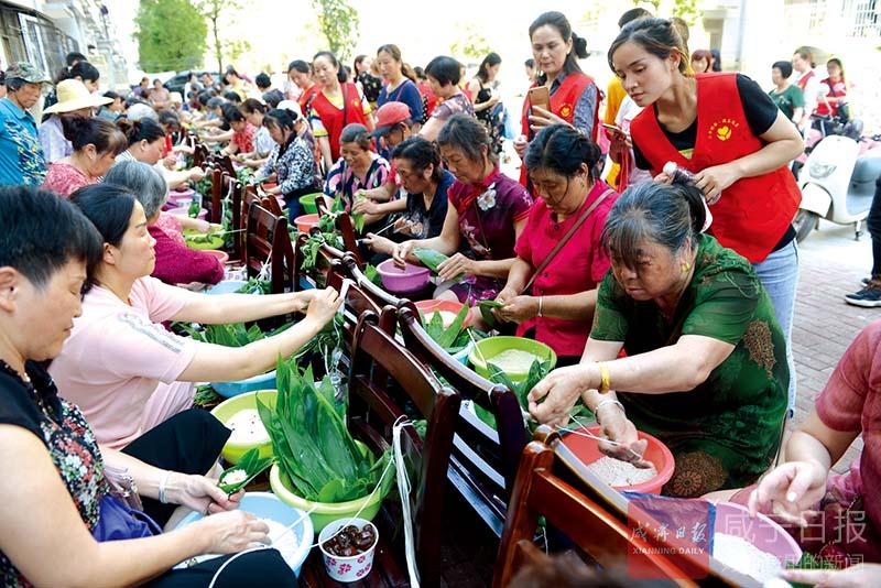 “瞧,這個(gè)粽子包得真好,不僅個(gè)頭飽滿,而且有棱有角”“蜜棗餡的粽子,還沒(méi)煮就已經(jīng)覺(jué)得很香了”……4號(hào)下午,在咸安區(qū)永安街道辦事處北正街社區(qū)幸福家園小區(qū),擠滿了社區(qū)居民,咸寧第二屆大型包粽子大賽北正街社區(qū)分賽正在進(jìn)行,居民們邊包粽子邊拉家常,好不熱鬧。