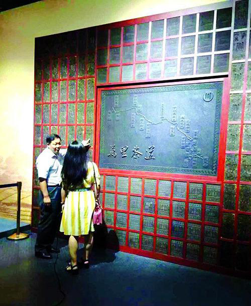 1、磚茶壓制的萬里茶道屏風(fēng)
