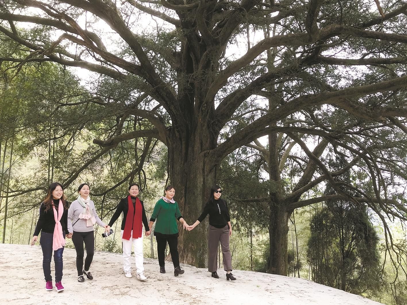 香榧樹要長幾百年才開始結(jié)果,果實(shí)三年才能成熟。因其神奇,許多人慕名而來。特別是當(dāng)?shù)卣畬⒐沸尥ê?,這里成了打卡新地。